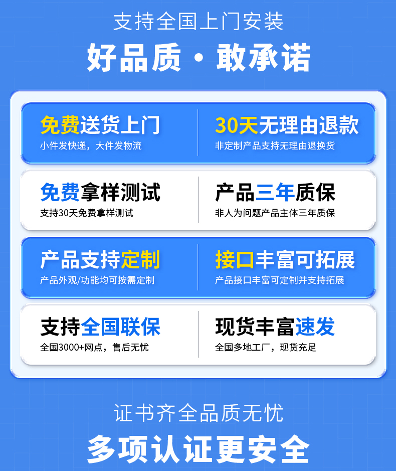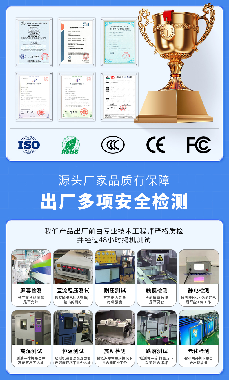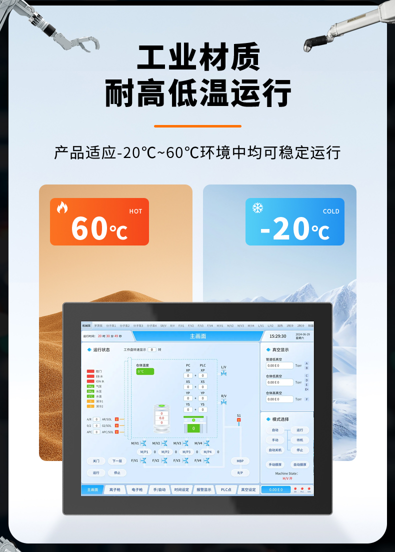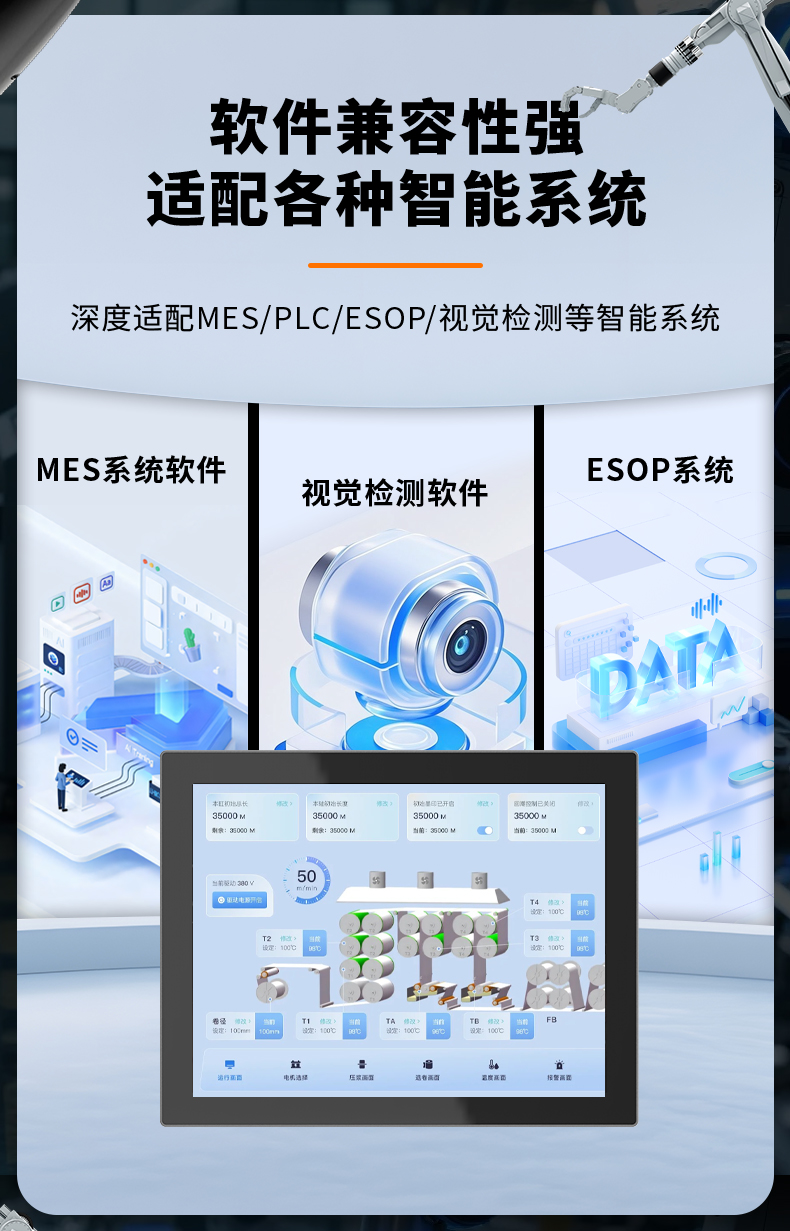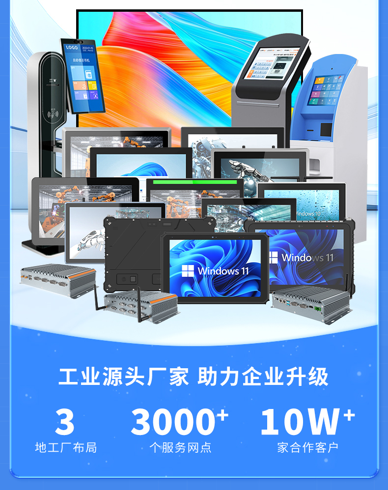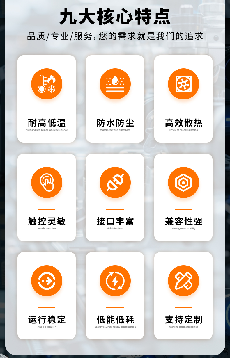 【产品优势】耐高低温、防水防尘、触控灵敏、接口丰富、兼容性强、运行稳定、低能低耗。