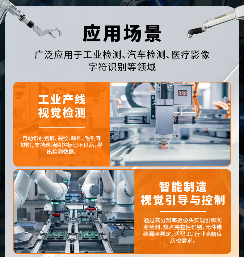 广泛应用于工业检测、汽车检测、医疗影像、字符识别等领域